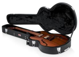 Custodia rigida per chitarra semiacustica. Rivestimento esterno in simil-pelle.